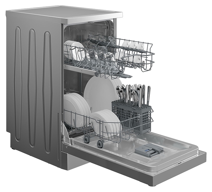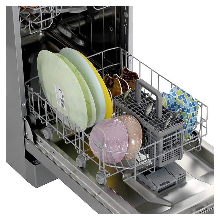 Посудомоечная машина Indesit DFS 1A50 S предназначена для гигиенической обработки и последующей сушки различной посуды в гостиничных комплексах и домашних условиях. Модель оснащена моечной камерой с откидной дверью, 2 разбрызгивающими коромыслами, дозаторами моющих и ополаскивающих средств, устройством умягчения воды, кабелем питания с вилкой, расположенной на фасаде двери электромеханической панелью управления с поворотным переключателем, нажимными функциональными клавишами и светодиодными сигнальными лампами с красной подсветкой индикации. Внутренняя облицовка камеры и двери выполнены из нержавеющей стали, внешняя облицовка с поверхностью серебристого оттенка, упаковка – из гофрокартона, полимерной пленки и полистирола.