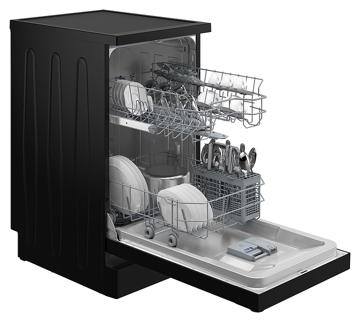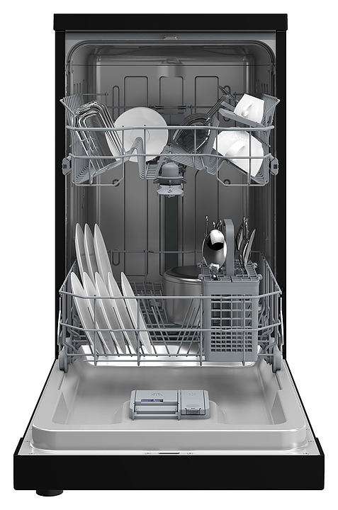Посудомоечная машина Indesit DFS 1A50 B предназначена для гигиенической обработки и последующей сушки различной посуды в гостиничных комплексах и домашних условиях. Модель оснащена моечной камерой с откидной дверью, 2 разбрызгивающими коромыслами, дозаторами моющих и ополаскивающих средств, устройством умягчения воды, кабелем питания с вилкой, расположенной на фасаде двери электромеханической панелью управления с поворотным переключателем, нажимными функциональными клавишами и светодиодными сигнальными лампами с красной подсветкой индикации. Внутренняя облицовка камеры и двери выполнены из нержавеющей стали, внешняя облицовка с поверхностью черного цвета, упаковка – из гофрокартона, полимерной пленки и полистирола.