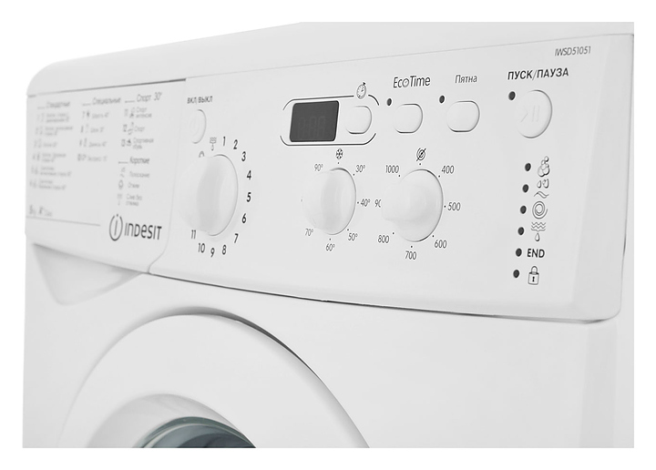 Стиральная машина Indesit IWSD 51051 CIS используется в домашних условиях, а также небольших прачечных для стирки, полоскания и отжима белья, одежды и тканей. Модель оснащена фронтальным загрузочным люком, левосторонней дверью с интегрированной рукояткой и обзорным остеклением, съемным контейнером для моющих средств с 3 отсеками, сливным шлангом, кабелем питания с вилкой, электромеханической панелью управления с поворотными переключателями, нажимными функциональными клавишами, светодиодными индикаторами и цифровым дисплеем. Корпус выполнен из металла с антикоррозийным покрытием белого цвета, остекление – из прочного термостойкого стекла, барабан – из нержавеющей стали.
