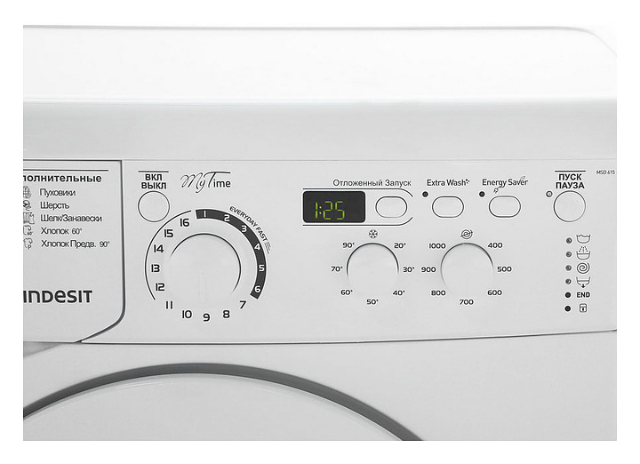 Стиральная машина Indesit MSD 615 используется в домашних условиях, а также небольших прачечных для стирки, полоскания и отжима белья, одежды и тканей. Модель оснащена фронтальным загрузочным люком, левосторонней дверью с интегрированной рукояткой и обзорным остеклением, съемным контейнером для моющих средств с 3 отсеками, сливным шлангом, кабелем питания с вилкой, электромеханической панелью управления с поворотными переключателями, нажимными функциональными клавишами, светодиодными индикаторами и цифровым дисплеем. Корпус выполнен из металла с антикоррозийным покрытием белого цвета, остекление – из прочного термостойкого стекла, барабан – из нержавеющей стали.