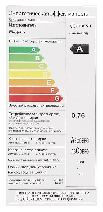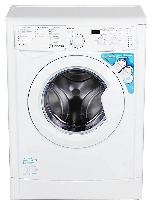 Стиральная машина Indesit IWUD 4105 (CIS) используется в домашних условиях, а также небольших прачечных для стирки, полоскания и отжима белья, одежды и тканей. Модель оснащена фронтальным загрузочным люком, левосторонней дверью с интегрированной рукояткой и обзорным остеклением, съемным контейнером для моющих средств с 3 отсеками, сливным шлангом, кабелем питания с вилкой, электромеханической панелью управления с поворотными переключателями, нажимными функциональными клавишами, светодиодными индикаторами и цифровым дисплеем. Корпус выполнен из металла с антикоррозийным покрытием белого цвета, остекление – из прочного термостойкого стекла, барабан – из нержавеющей стали.