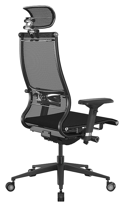 Офисное кресло Samurai Black Edition New предназначено для комфортного размещения пользователя в кабинетах и офисах различных учреждений, а также в домашних условиях. Газлифт, каркасы сиденья и спинки выполнены из стали с полимерным покрытием, литой корпус механизма качания – из алюминия, кронштейн подголовника – из стали с хромированным и полимерным покрытием, каркас подушки подголовника – из стали с полимерным покрытием и хромированным молдингом, обтяжка сиденья, спинки и подголовника – из сверхпрочной экологичной сетчатой ткани TS, армированной арамидным волокном, обивка сиденья дублирована тканью с повышенной износостойкостью, подлокотники – из металла и пластика с мягкими полиуретановыми накладками, пятилучье – из пластика, ролики – из полиамида с полиуретановым ободком, исполнение каркасов и отделки в черной цветовой гамме. Комплектация: