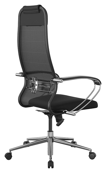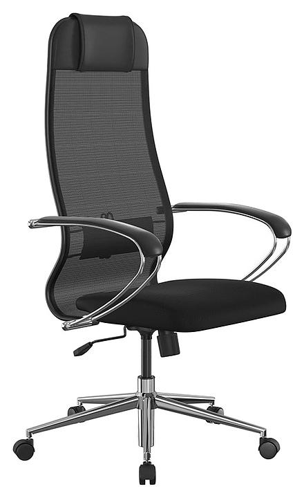 Офисное кресло ErgoLife Set 11 серии Sit 10 предназначено для комфортного размещения пользователя в кабинетах и офисах различных учреждений, а также в домашних условиях. Газлифт, подлокотники и пятилучье выполнены из стали с хромированной поверхностью, каркас спинки – из стали с полимерным покрытием черного цвета и хромированным молдингом, корпус механизма качания – из стали, обтяжка спинки – из сетчатой ткани X2, обивка сиденья – из сетчатой ткани, подголовник – из экокожи Infinity Easy Clean легкой очистки, мягкие накладки подлокотников – из экокожи Extra, ролики – из полиамида с полиуретановым ободком, исполнение отделки и роликов в черной цветовой гамме. Комплектация: