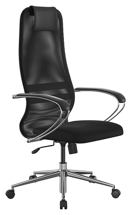 Офисное кресло ErgoLife SU-B-8 серии Sit 8 предназначено для комфортного размещения пользователя в кабинетах и офисах различных учреждений, а также в домашних условиях. Газлифт, подлокотники и пятилучье выполнены из стали с хромированной поверхностью, каркас спинки – из стали с полимерным покрытием черного цвета, корпус механизма качания – из стали, обтяжка спинки – из сетчатой ткани X1, обивка сиденья – из сетчатой ткани, подголовник – из экокожи Infinity Easy Clean легкой очистки, мягкие накладки подлокотников – из экокожи Extra, ролики – из полиамида, исполнение отделки и роликов в черной цветовой гамме. Комплектация: