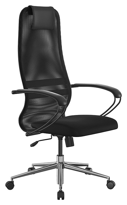 Офисное кресло ErgoLife SU-B-8 серии Sit 8 предназначено для комфортного размещения пользователя в кабинетах и офисах различных учреждений, а также в домашних условиях. Газлифт и пятилучье выполнены из стали с хромированной поверхностью, каркас спинки и подлокотники – из стали с полимерным покрытием черного цвета, корпус механизма качания – из стали, обтяжка спинки – из сетчатой ткани X1, обивка сиденья – из сетчатой ткани, подголовник – из экокожи Infinity Easy Clean легкой очистки, мягкие накладки подлокотников – из экокожи Extra, ролики – из полиамида, исполнение отделки и роликов в черной цветовой гамме. Комплектация: