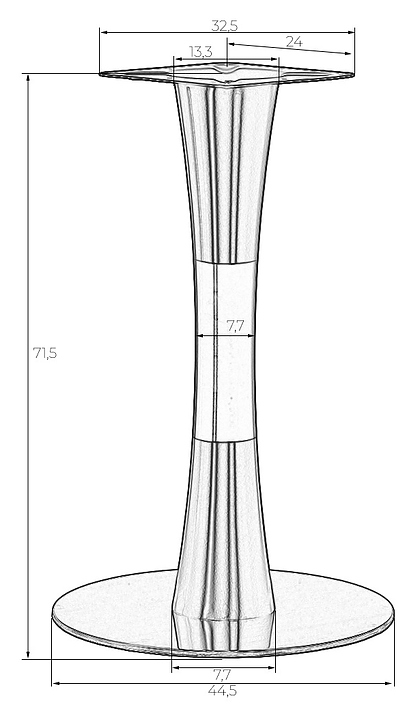Подстолье обеденное DOBRIN GIORGIO LMS-6810 используется в качестве опоры для столешницы обеденного стола в кафе, ресторанах и на других предприятиях общественного питания и торговли. Модель оснащена регулировкой под неровный пол. Изделие выполнено из металла, ножка из круглой металлической трубы. Особенности: