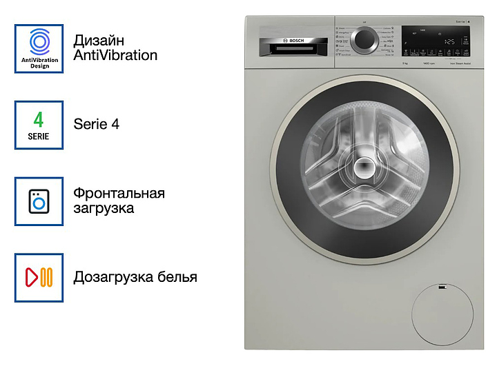 Стиральная машина Bosch WGA2440XME используется в квартирах и частных домах для стирки, полоскания и отжима белья, ткани и одежды. Модель оснащена фронтальной загрузкой, электронным управлением, поворотным переключателем и многофункциональным LED-дисплеем. Энергоэффективный инверторный двигатель EcoSilence Drive отличается низким уровнем шума и долговечностью. Система ActiveWater/WaterPerfect автоматически дозирует воду в зависимости от степени загрузки и типа ткани, что обеспечивает оптимальное потребление воды и электроэнергии. Барабан VarioDrum выполнен из нержавеющей стали. 14 программ стирки: