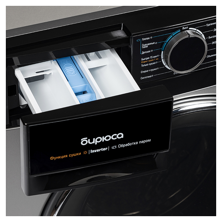 Стиральная машина Бирюса WMD-MX814/15 S предназначена для стирки текстильных изделий с применением синтетических моющих средств низкого пенообразования, а также для полоскания, отжима и сушки текстильных изделий в бытовых условиях. Модель оснащена сушкой, фронтальной загрузкой, LED дисплеем и инверторным мотором. Программы:
