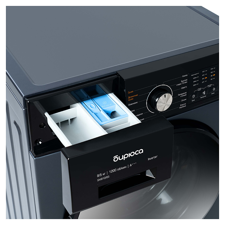 Стиральная машина Бирюса WMD-SM812/03 W предназначена для стирки текстильных изделий с применением синтетических моющих средств низкого пенообразования, а также для полоскания, отжима и сушки текстильных изделий в бытовых условиях. Модель оснащена сушкой, фронтальной загрузкой, LED дисплеем и инверторным мотором. Программы: