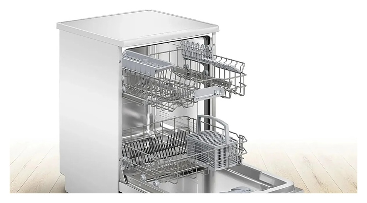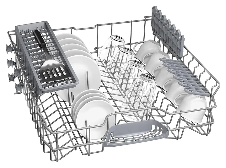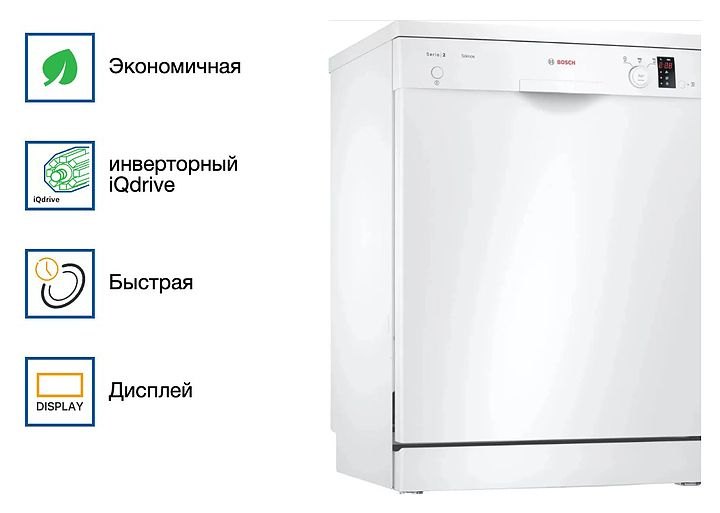 Посудомоечная машина Bosch SMS23DW01T предназначена для гигиенической обработки и последующей сушки различной посуды в домашних условиях. Модель оснащена инверторным двигателем iQdrive, моечной камерой с откидной дверью, открытой панелью управления, дисплеем, кнопками и поворотным переключателем. Программы мытья позволяют выбрать наиболее подходящий режим в зависимости от степени загрязнения посуды и ее типа. Внутренний резервуар выполнен из нержавеющей стали. Особенности: