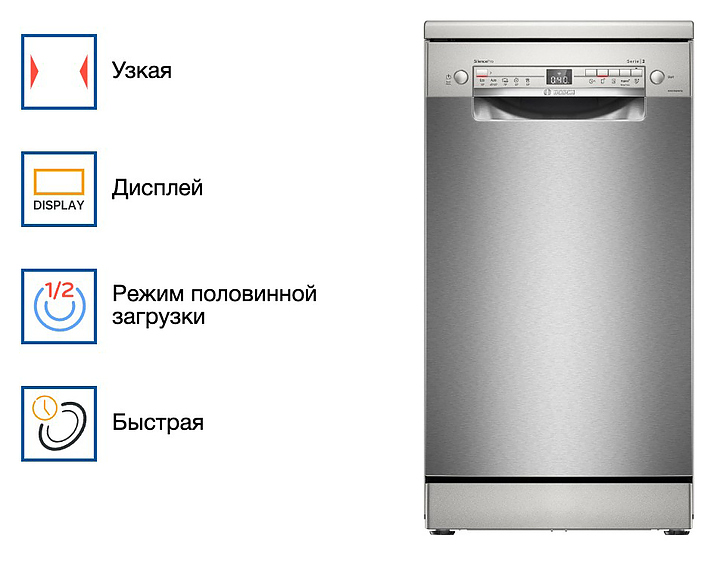Посудомоечная машина Bosch SPS2HMI54Q предназначена для гигиенической обработки и последующей сушки различной посуды в домашних условиях. Модель оснащена инверторным двигателем EcoSilence Drive, моечной камерой с откидной дверью, открытой панелью управления, дисплеем и кнопками. Технология Home Connect позволяет настраивать и запускать мойку со смартфона. Сенсор чистоты воды AquaSensor гарантирует эффективное и качественное мытье посуды. Функция HygienePlus обеспечивает дополнительный этап высокотемпературной обработки и ополаскивания, которые уничтожают бактерии и микробы, обеспечивая безукоризненную чистоту и безопасность. Внутренний резервуар выполнен из нержавеющей стали. Особенности: