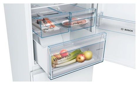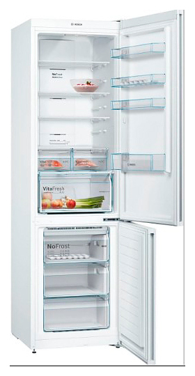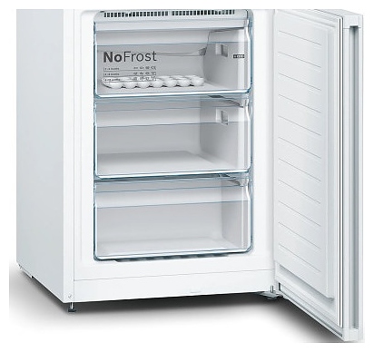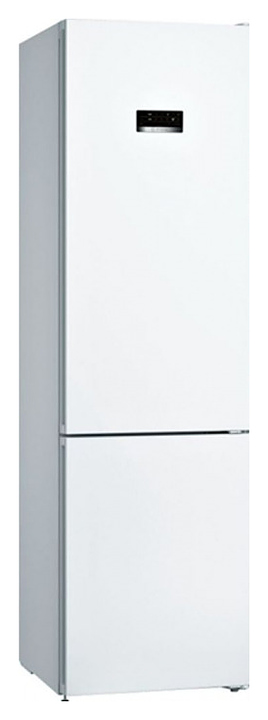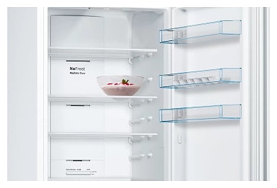 Холодильник Bosch KGN39XW30U предназначен для охлаждения, замораживания, кратковременного и длительного хранения продуктов питания в частных домах, квартирах, отелях и офисах. Модель оснащена электронным управлением с сенсорными элементами, дисплеем, внутренним светодиодным освещением холодильной камеры и встроенной вертикальной ручкой. Система охлаждения No Frost предотвращает образование льда и инея внутри холодильной и морозильной камер, что упрощает обслуживание, экономит энергию и поддерживает оптимальные условия для хранения продуктов. Функция FreshSense поддерживает стабильную температуру внутри холодильника, а система MultiAirflow обеспечивает равномерное распределение холодного воздуха. Система Home Connect позволяет управлять устройством дистанционно через смартфон или планшет. Особенности: