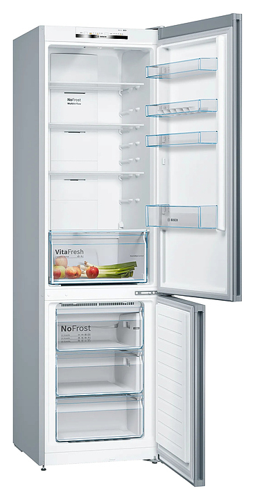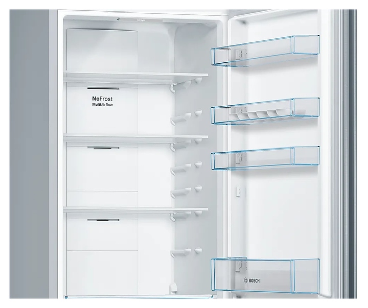 Холодильник Bosch KGN39UL30U предназначен для охлаждения, замораживания, кратковременного и длительного хранения продуктов питания в частных домах, квартирах, отелях и офисах. Модель оснащена электронным управлением с кнопками, внутренним светодиодным освещением холодильной камеры и встроенной вертикальной ручкой. Система охлаждения No Frost предотвращает образование льда и инея внутри холодильной и морозильной камер, что упрощает обслуживание, экономит энергию и поддерживает оптимальные условия для хранения продуктов. Функция MultiAirflow обеспечивает равномерное распределение холодного воздуха. Полки выполнены из высокопрочного стекла. Особенности: