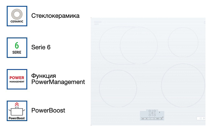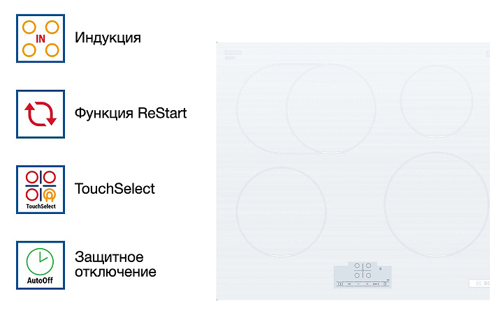 Варочная панель Bosch PIF612BB1E предназначена для приготовления большого ассортимента блюд в наплитной посуде в домашних условиях. Модель оснащена сенсорной системой управления TouchSelect и таймером с функцией отключения для каждой конфорки. Индукционная технология обеспечивает передачу до 90% энергии непосредственно посуде, что значительно экономит электроэнергию по сравнению с традиционными плитами. Отсутствие открытого огня и минимальный нагрев окружающей среды делают приготовление пищи более безопасным и комфортным. Поверхность выполнена из стеклокерамики. Особенности:
