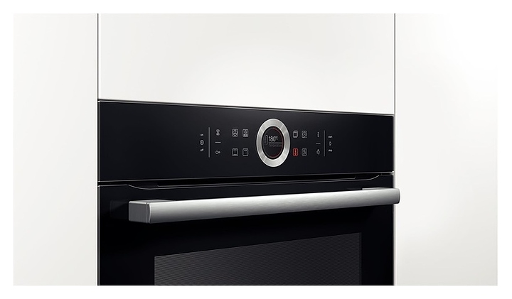 Духовой шкаф Bosch HBG633NB1 серии 8 используется в квартирах и частных домах для приготовления широкого спектра блюд из овощей, мяса, птицы и рыбы, а также выпечки десертов и хлебобулочных изделий. Модель оснащена цветным TFT дисплеем с сенсорными кнопками, переключателем Control Ring, многофункциональными часами Easy Clock, таймером и галогенным внутренним освещением. Одноуровневые телескопические направляющие легко выдвигаются из камеры, что гарантирует комфорт при обращении с горячими противнями. Брызги от жарения и выпекания поглощаются пористой матовой керамикой EcoClean и удаляются во время работы прибора. В комплект поставки входят комбинированная решетка и универсальный противень. Особенности: