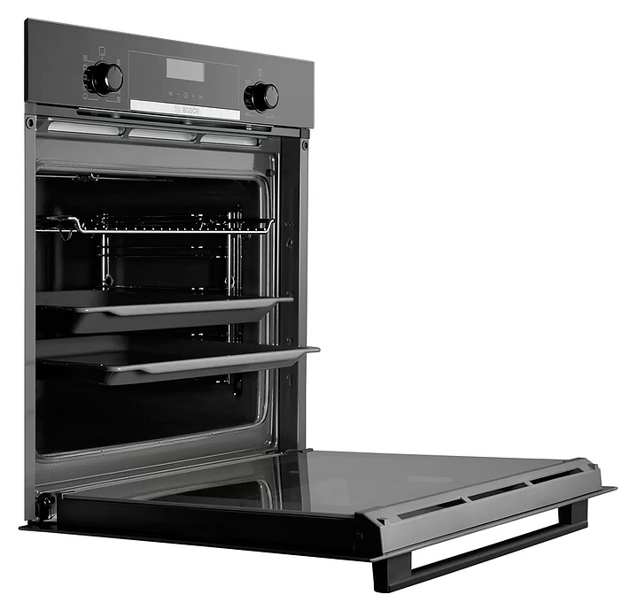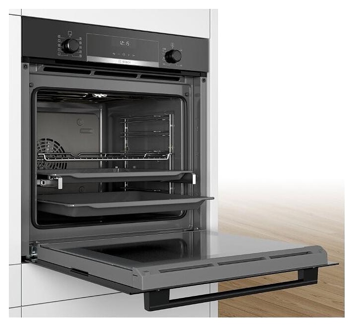 Духовой шкаф Bosch HBG5370B0 серии 6 используется в квартирах и частных домах для приготовления широкого спектра блюд из овощей, мяса, птицы и рыбы, а также выпечки десертов и хлебобулочных изделий. Модель оснащена LCD дисплеем, сенсорными, поворотными и утапливаемыми элементами управления, электронными часами, таймером и галогенным внутренним освещением. Брызги от жарения и выпекания поглощаются пористой матовой керамикой EcoClean и удаляются во время работы прибора. В комплект поставки входят комбинированная решетка, эмалированный и универсальный противни. Особенности: