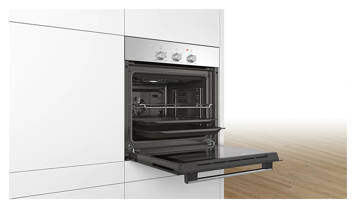 Духовой шкаф Bosch HBF011BR0Q серии 2 используется в квартирах и частных домах для приготовления широкого спектра блюд из овощей, мяса, птицы и рыбы, а также выпечки десертов и хлебобулочных изделий. Модель оснащена поворотными элементами управления, таймером и галогенным внутренним освещением. Функция 3D-горячий воздух распределит жар на всех уровнях приготовления одновременно. Дверца из двойного прочного стекла гарантирует безопасность. В комплект поставки входят комбинированная решетка, эмалированный и универсальный противни. Особенности: