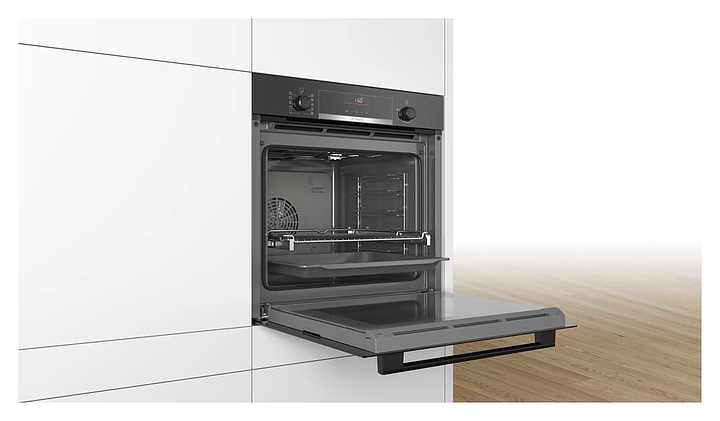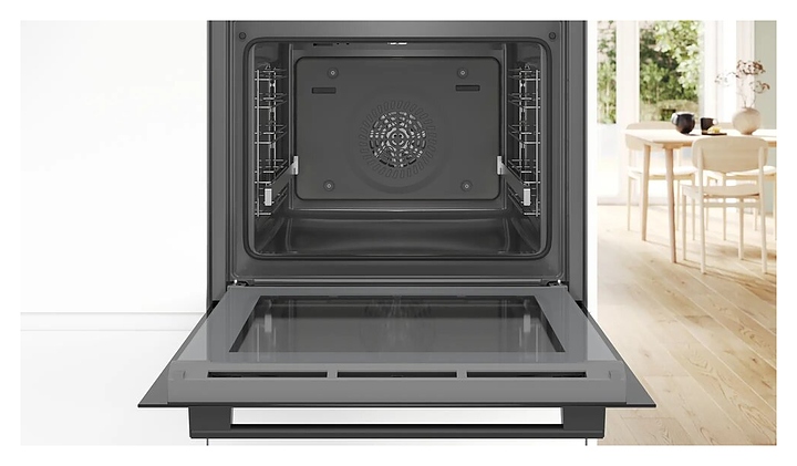 Духовой шкаф Bosch HBA5360B0 серии 6 используется в квартирах и частных домах для приготовления широкого спектра блюд из овощей, мяса, птицы и рыбы, а также выпечки десертов и хлебобулочных изделий. Модель оснащена сенсорными и поворотными элементами управления, LED дисплеем, электронными часами, таймером и галогенным внутренним освещением. Аварийное отключение препятствует возникновению опасных ситуаций и продлевает срок эксплуатации. Специальное покрытие внутренних стенок духовки EcoClean с катализаторами гарантирует простую и быструю очистку. В комплект поставки входят комбинированная решетка и универсальный противень. Особенности: