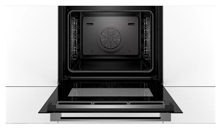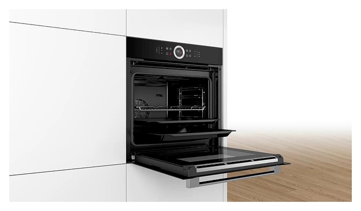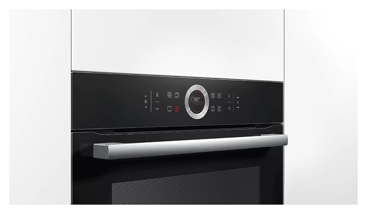 Духовой шкаф Bosch HBG635BB1 серии 8 используется в квартирах и частных домах для приготовления широкого спектра блюд из овощей, мяса, птицы и рыбы, а также выпечки десертов и хлебобулочных изделий. Модель оснащена сенсорными элементами управления, переключателем Control Ring, цветным TFT дисплеем с сенсорными кнопками, многофункциональными часами Easy Clock, таймером и галогенным внутренним освещением. Специальное покрытие внутренних стенок духовки EcoClean с катализаторами гарантирует легкую очистку. В комплект поставки входят комбинированная решетка, эмалированный и универсальный противни. Особенности: