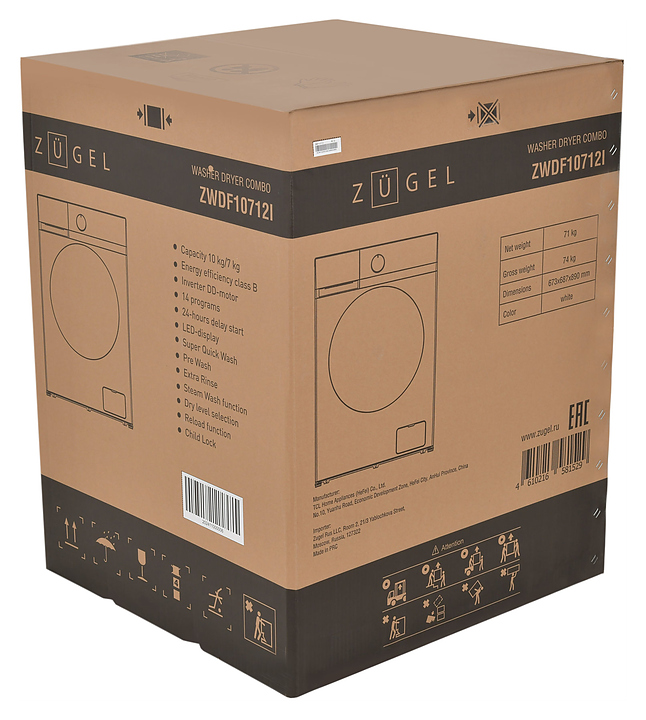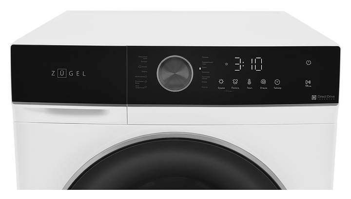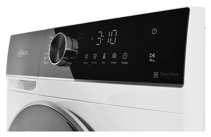 Стиральная машина Zugel ZWDF10712I предназначена для стирки, полоскания, отжима и сушки текстильных изделий в бытовых условиях. Модель оснащена сенсорным управлением с LED-дисплеем и поворотным переключателем программ. Барабан выполнен из нержавеющей стали.