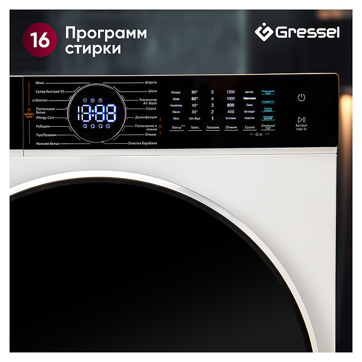 Стиральная машина Gressel UWS601 предназначена для стирки, полоскания, отжима и сушки текстильных изделий в бытовых условиях. Модель оснащена сенсорной панелью управления EasyTouch с LED дисплеем. Особенности: