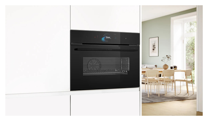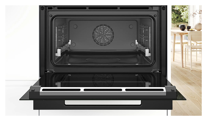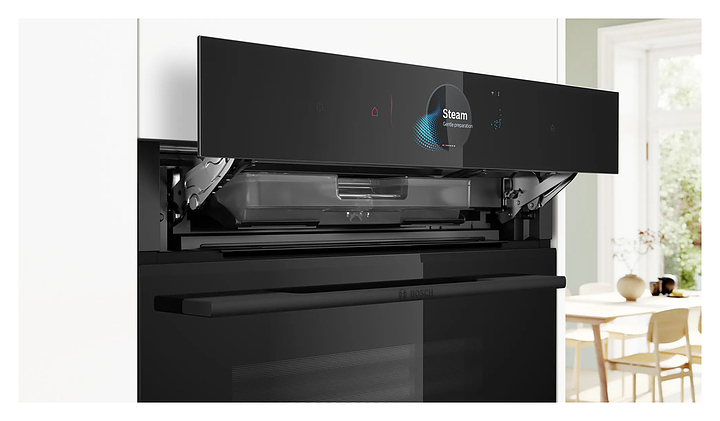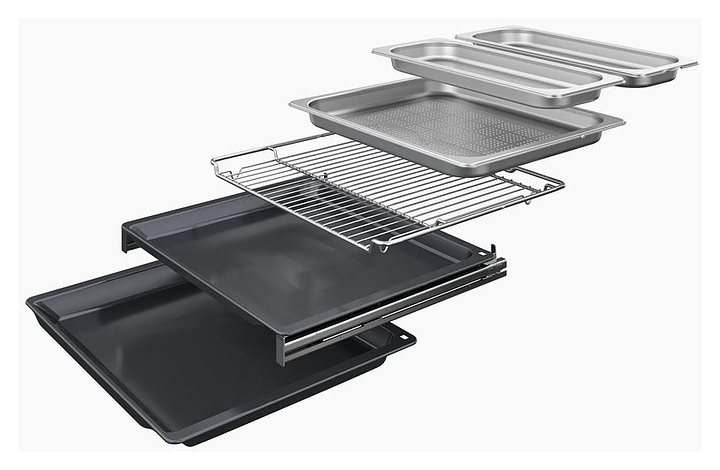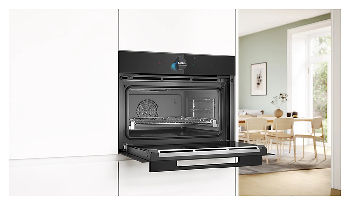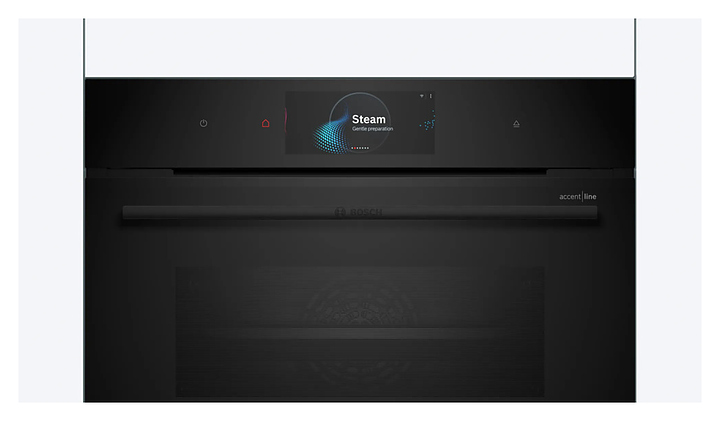 Духовой шкаф Bosch CSG958DB1 серии 8 используется в квартирах и частных домах для приготовления широкого спектра блюд из овощей, мяса, птицы и рыбы, а также выпечки десертов и хлебобулочных изделий. Модель оснащена сенсорным управлением, цветным TFT дисплеем с сенсорными кнопками, электронными часами, таймером и внутренним LED освещением. Функция HomeConnect контролирует настройки работы и процесс выполнения программы через мобильное приложение. Специальное покрытие внутренних стенок EcoClean с катализаторами позволяет легко устранить жиры и загрязнения. В комплект поставки входят решетка, эмалированный и универсальный противни, перфорированная емкость для приготовления на пару размер XL, емкость для приготовления на пару и перфорированный контейнер для пара размер М. Особенности: