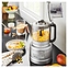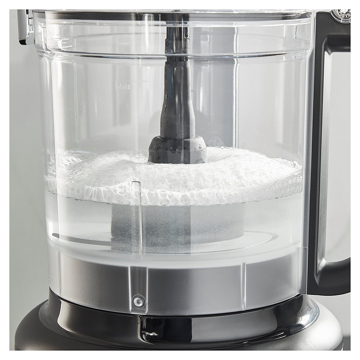 Кухонный комбайн KitchenAid 5KFP1319ECU предназначен для измельчения, смешивания, взбивания, нарезки и шинковки различных пищевых продуктов в домашних условиях. Модель оснащена электродвигателем постоянного тока, кабелем питания с вилкой и расположенной на фронтальной стенке электромеханической панелью управления с нажимными функциональными клавишами. Корпус обтекаемой формы круглого сечения выполнен из пластика с поверхностью серебристого оттенка (Contour Silver) и декоративной серебристой полосой с логотипом по периметру верхней части, чаша, загрузочная крышка и толкатель – из ударопрочного пластика без содержания бисфенола А (BPA), адаптер привода – из ударопрочного черного пластика с металлическим каркасным стержнем, рукоятка для регулировки толщины нарезки – из пластика с серебристой поверхностью, нож для теста, база многофункционального ножа и контейнер для аксессуаров – из ударопрочного черного полимера, диски, лезвия мультифункционального ножа и ножа для нарезки кубиками – из высококачественной нержавеющей стали, плоская крышка и рукоятка чаши – из черного полимера с матовой поверхностью. Комплектация: