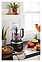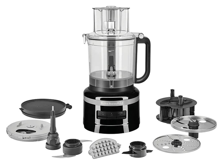 Кухонный комбайн KitchenAid 5KFP1319EOB предназначен для измельчения, смешивания, взбивания, нарезки и шинковки различных пищевых продуктов в домашних условиях. Модель оснащена электродвигателем постоянного тока, кабелем питания с вилкой и расположенной на фронтальной стенке электромеханической панелью управления с нажимными функциональными клавишами. Корпус обтекаемой формы круглого сечения выполнен из пластика с поверхностью черного цвета (Onyx Black) и декоративной серебристой полосой с логотипом по периметру верхней части, чаша, загрузочная крышка и толкатель – из ударопрочного пластика без содержания бисфенола А (BPA), адаптер привода – из ударопрочного черного пластика с металлическим каркасным стержнем, рукоятка для регулировки толщины нарезки – из пластика с серебристой поверхностью, нож для теста, база многофункционального ножа и контейнер для аксессуаров – из ударопрочного черного полимера, диски, лезвия мультифункционального ножа и ножа для нарезки кубиками – из высококачественной нержавеющей стали, плоская крышка и рукоятка чаши – из черного полимера с матовой поверхностью. Комплектация: