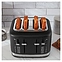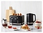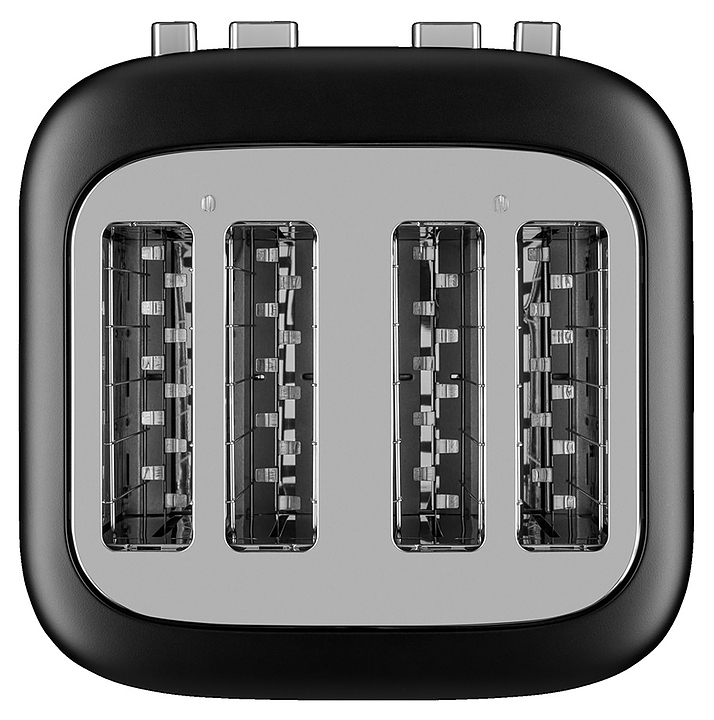Тостер KitchenAid 5KMT4109EBM используется в офисах, гостиницах и домашних условиях для обжаривания ломтиков хлеба различных сортов. Модель оснащена кабелем питания с вилкой и 2 независимыми блоками нагрева, каждый блок имеет 2 слота для тостов и электромеханическую панель управления с рычажными рукоятками, нажимными функциональными клавишами и светодиодными индикаторами. Корпус обтекаемой прямоугольно ориентированной формы выполнен из металла и ударопрочного пластика с матовой поверхностью черного цвета (Black Matte) и декорирован горизонтальной серебристой полосой с логотипом по периметру основания, верхняя панель и решетки слотов – из нержавеющей стали с глянцевой серебристой поверностью, опоры – из черного полимера с матовой поверхностью, поддон для крошек – из нержавеющей стали, фурнитура с серебристой поверхностью. В комплект поставки входят инструкция по эксплуатации, гарантийный талон и заводская упаковка. Особенности: