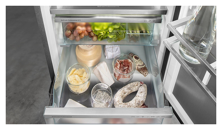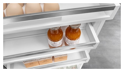 Система VarioSpace позволяет снять отдельные ящики морозильника, обеспечивая дополнительное пространство для хранения