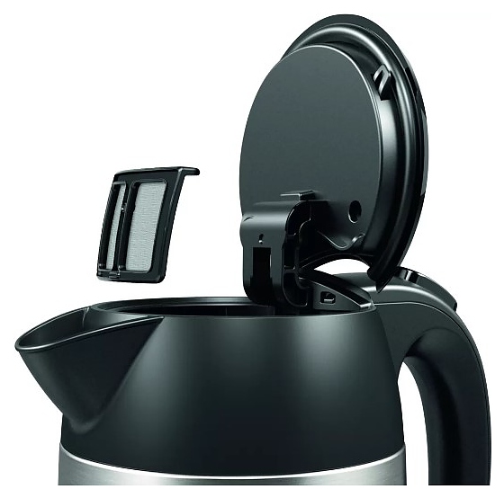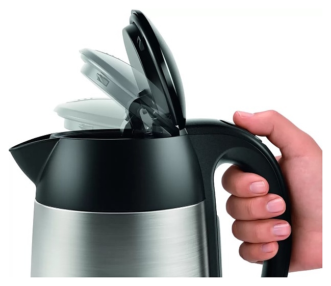 Чайник Bosch TWK3P420 предназначен для нагрева и кипячения воды при приготовлении чая и кофе в частных домах, квартирах, отелях и офисах. Модель оснащена запираемой откидной крышкой и индикатором уровня воды. Антискользящий цоколь позволяет установить прибор на любой поверхности. Переключатель Lift Switch Off обеспечивает автоматическое отключение при снятии с подставки, что позволяет избежать перегрева и повреждения устройства, а также снижает энергопотребление и минимизирует вероятность поражения электрическим током. Корпус выполнен из нержавеющей стали. Особенности: