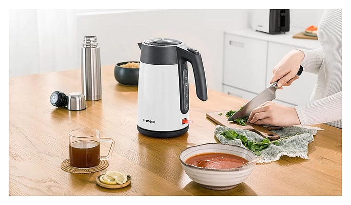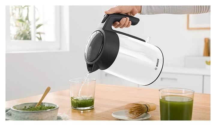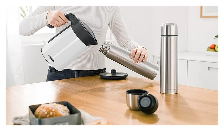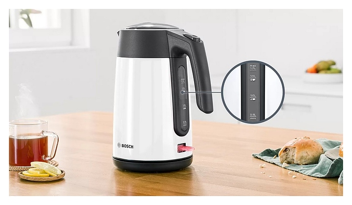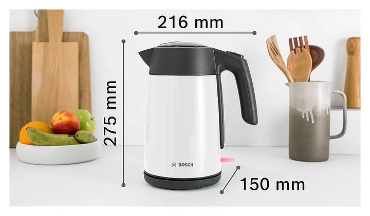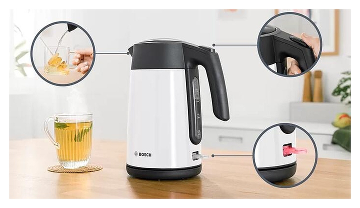 Чайник Bosch TWK7L461 предназначен для нагрева и кипячения воды при приготовлении чая и кофе в частных домах, квартирах, отелях и офисах. Модель оснащена запираемой откидной крышкой, подставкой и индикатором уровня воды. Автоматическое отключение при снятии с цоколя гарантирует безопасность эксплуатации. Корпус выполнен из нержавеющей стали. Особенности:
