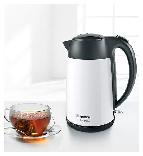 Чайник Bosch TWK3P421 предназначен для нагрева и кипячения воды при приготовлении чая и кофе в частных домах, квартирах, отелях и офисах. Модель оснащена запираемой откидной крышкой и индикатором уровня воды. Антискользящий цоколь позволяет установить прибор на любой поверхности. Переключатель Lift Switch Off обеспечивает автоматическое отключение при снятии с подставки, что позволяет избежать перегрева и повреждения устройства, а также снижает энергопотребление и минимизирует вероятность поражения электрическим током. Функция «Без пара» используется для заваривания чая или создания напитков, не требующих только что закипевшей воды. Корпус выполнен из нержавеющей стали. Особенности: