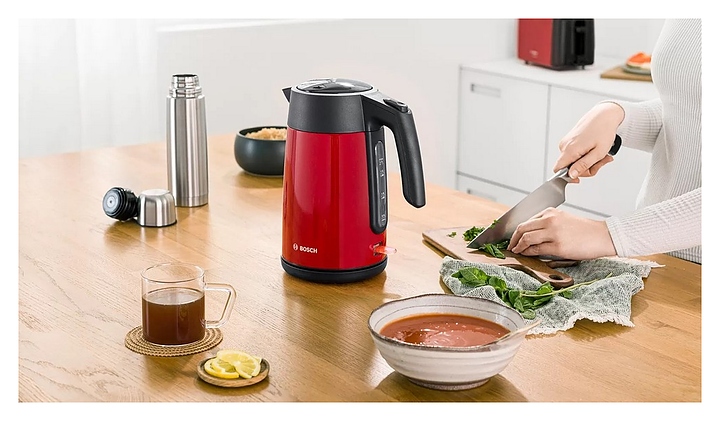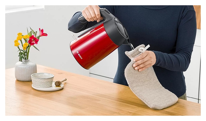 Чайник Bosch TWK7L464 предназначен для нагрева и кипячения воды при приготовлении чая и кофе в частных домах, квартирах, отелях и офисах. Модель оснащена запираемой откидной крышкой, подставкой и индикатором уровня воды. Автоматическое открывание крышки и отключение прибора без воды обеспечивают безопасность эксплуатации. Корпус выполнен из нержавеющей стали. Особенности:
