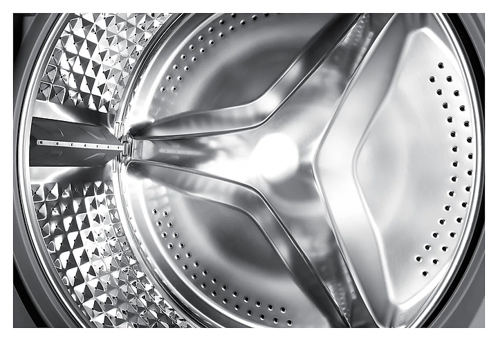 Стиральная машина Samsung WW5100A используется в квартирах и частных домах для стирки, полоскания и отжима белья, ткани и одежды. Модель оснащена фронтальной загрузкой, сенсорным LED дисплеем, барабаном Diamond и цифровым инверторным мотором, гарантирующим тихую работу. Гигиенический цикл с паром удаляет въевшуюся грязь, уменьшает воздействие пылевых клещей, кошачьей, собачьей, травяной пыльцы и грибков. Функция Drum Clean удаляет 99,9% бактерий, вызывающих неприятный запах из барабана без использования моющего средства, используя комбинацию замачивания, пульсации и высокоскоростного отжима. Программы: