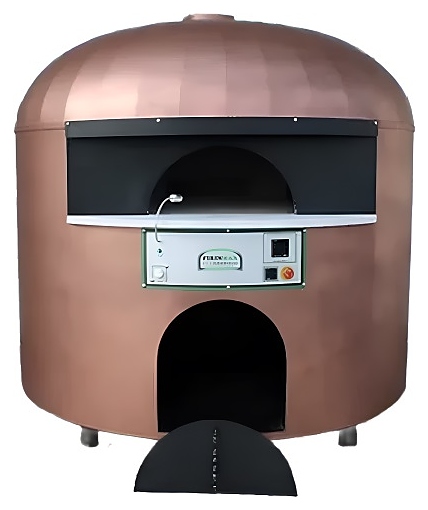 Дровяная печь Firinmak TurboWood 165 используется в ресторанах, барах, кафе, на других предприятиях общественного питания и торговли для выпекания пиццы, хлеба и пирогов, приготовления шашлыка и гриль-блюд, обжарки, тушения и запекания по рецептуре, основанной на томлении и длительной выдержке при медленно падающей температуре. Модель оснащена камерой с подом и куполом круглого сечения, патрубком дымохода сверху, заглубленным устьем в форме арки со съемной заслонкой, расположенной под устьем электромеханической панелью управления с поворотным переключателем и цифровыми дисплеями. Купол выполнен из бетона и армирован металлической сеткой, стенд – из металла с антикоррозийным покрытием, внешняя облицовка – из листовой стали с антикоррозийным покрытием порошковой краской, теплоизоляция свода купола – из минеральной ваты, теплоизоляция основания – из газобетона.