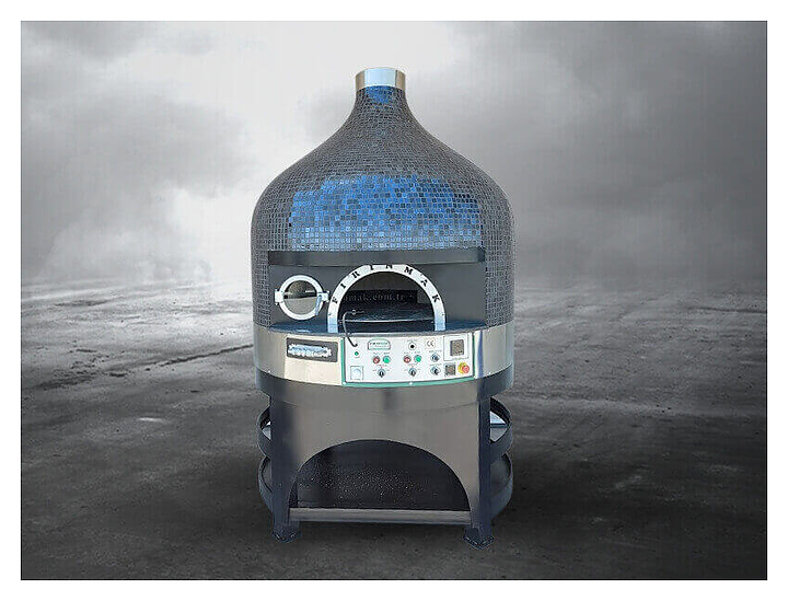 Комбинированная ротационная печь Firinmak RotAroWoodGas 120 используется в ресторанах, барах, кафе, на других предприятиях общественного питания и торговли для выпекания пиццы, хлеба и пирогов, приготовления шашлыка и гриль-блюд, обжарки, тушения и запекания по рецептуре, основанной на томлении и длительной выдержке при медленно падающей температуре. Модель оснащена камерой с подом и куполом круглого сечения, отсеком для загрузки дров с круглой распашной дверью с прозрачным обзорным остеклением, устьем в форме арки с фиксированными боковыми и съемной центральной заслонками, отверстием дымохода сверху, расположенной под устьем электромеханической панелью управления с поворотными переключателями, функциональными клавишами, светодиодными индикаторами и цифровыми дисплеями. Купол выполнен из бетона и армирован металлической сеткой, стенд – из металла с антикоррозийным покрытием, внешняя облицовка купола – из листовой стали с антикоррозийным покрытием порошковой краской, теплоизоляция свода купола – из минеральной ваты, теплоизоляция основания – из газобетона. Декоративная отделка не входит в комплект поставки и приобретается отдельно. Особенности: