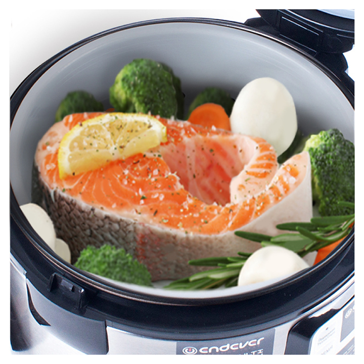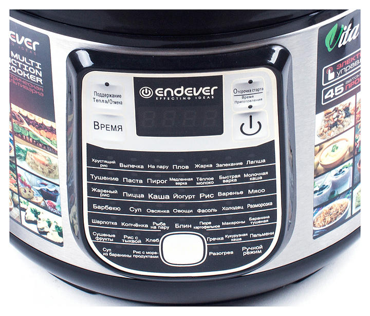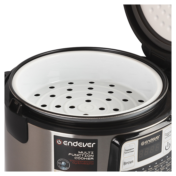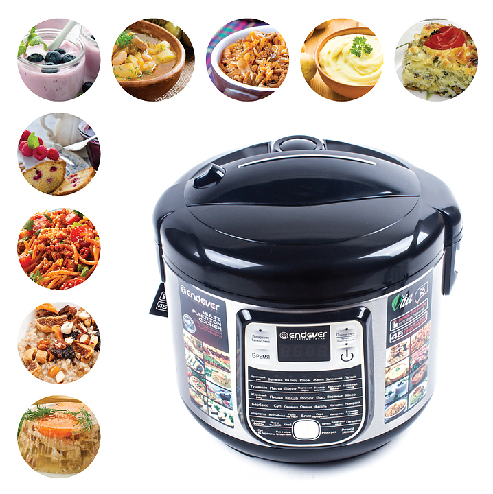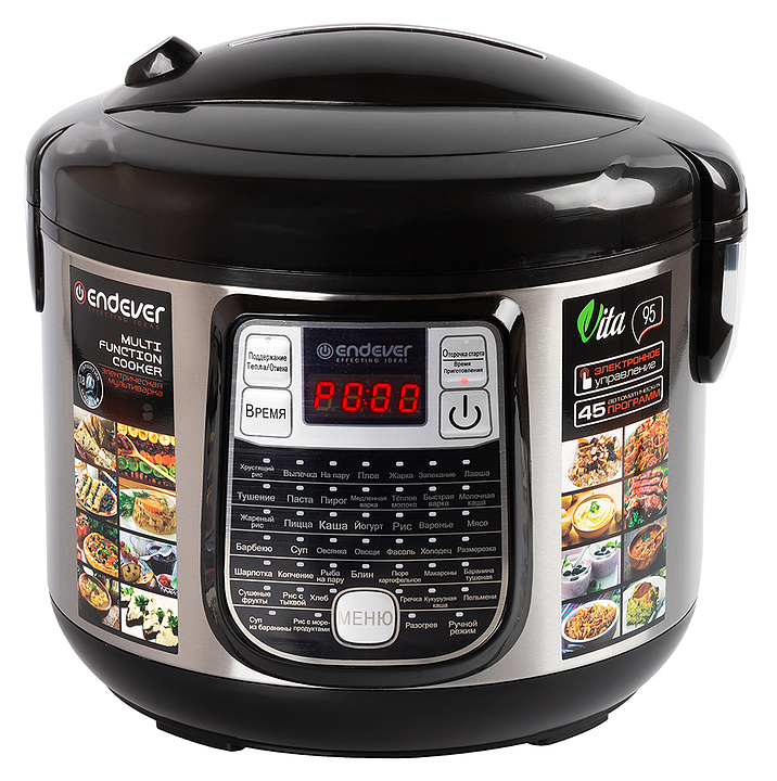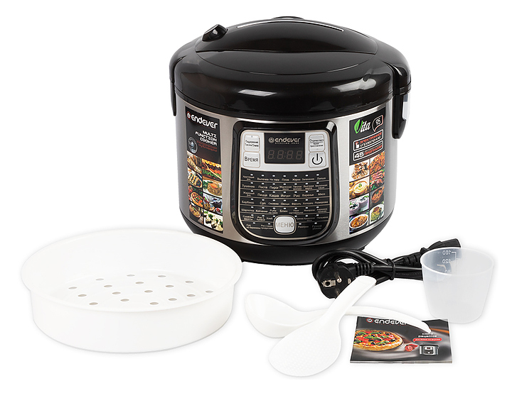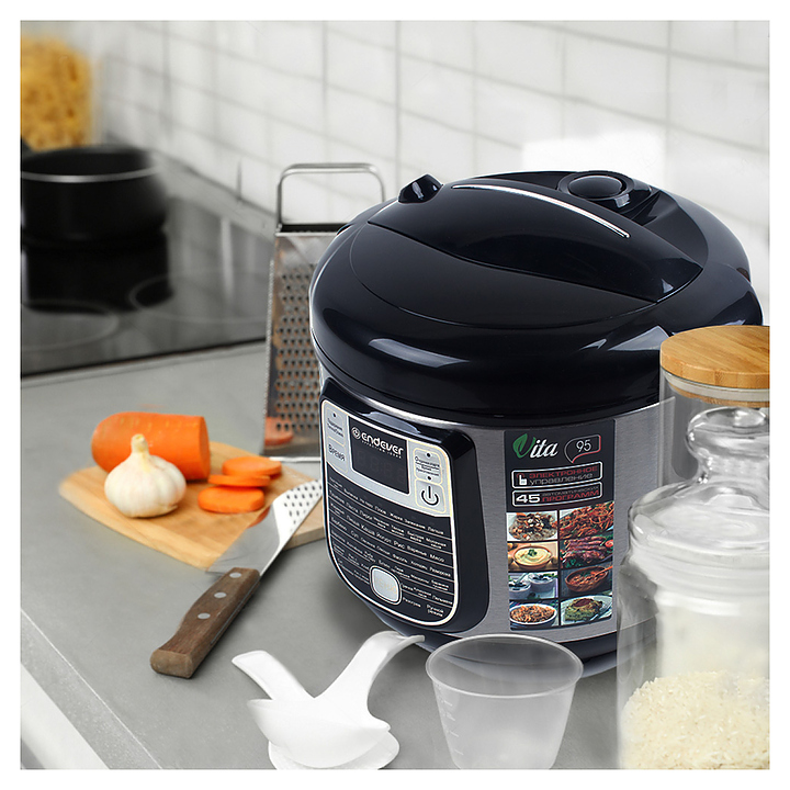 Мультиварка ENDEVER VITA 95 предназначена для приготовления на пару, обжаривания, тушения, выпечки и варки различных продуктов в квартирах и частных домах. Модель оснащена электронным кнопочным управлением и клапаном выпуска пара. Ручная регулировка времени приготовления гарантирует комфортную эксплуатацию. Корпус выполнен из металла. В комплект поставки входят съемный каплесборник для конденсата, съемная кастрюля, контейнер-пароварка, черпак для супа, ложка для крупы, мерный стакан 120 мл, держатель для ложки и книга рецептов. Особенности: