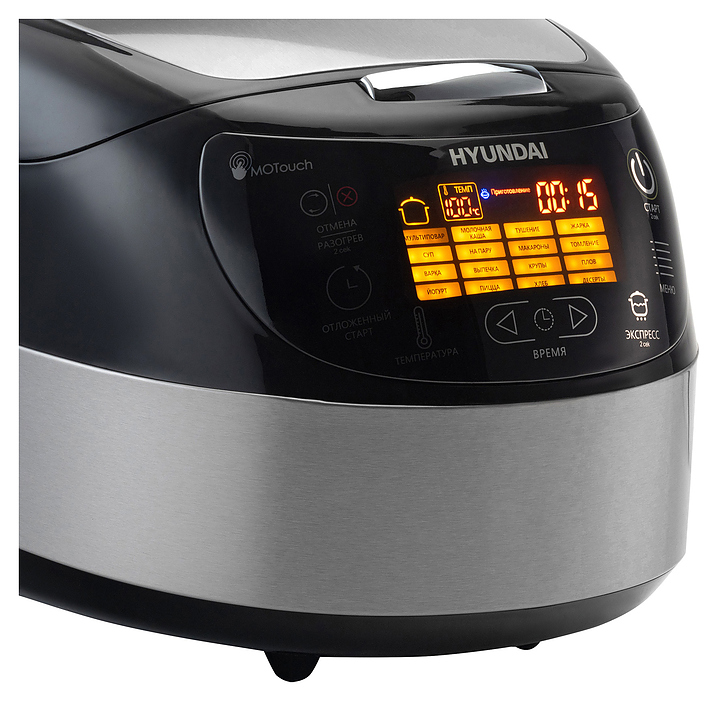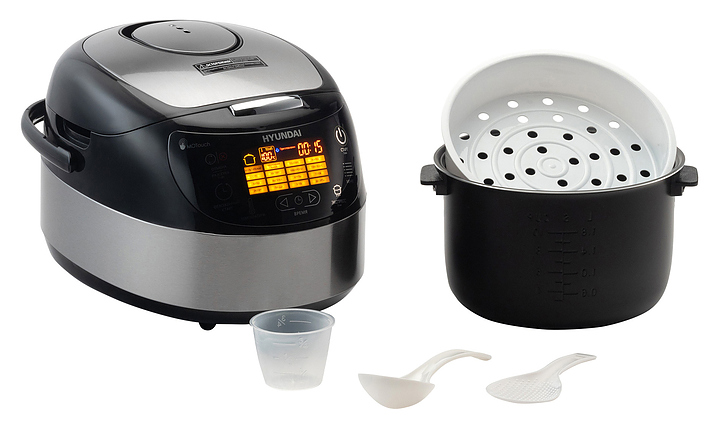 Мультиварка Hyundai HYMC-1610 предназначена для приготовления на пару, обжаривания, тушения, выпечки и варки различных продуктов в квартирах и частных домах. Модель оснащена сенсорной панелью управления, ярким ЖК-дисплеем и ручкой для комфортного перемещения. Антипригарное тефлоновое покрытие чаши позволяет готовить с использованием минимального количества масла и сохраняет естественный вкус. Корпус выполнен из пластика и нержавеющей стали. В комплект поставки входят корзина для приготовления на пару, мерный стакан, глубокая ложка и плоская ложка для круп. Особенности: