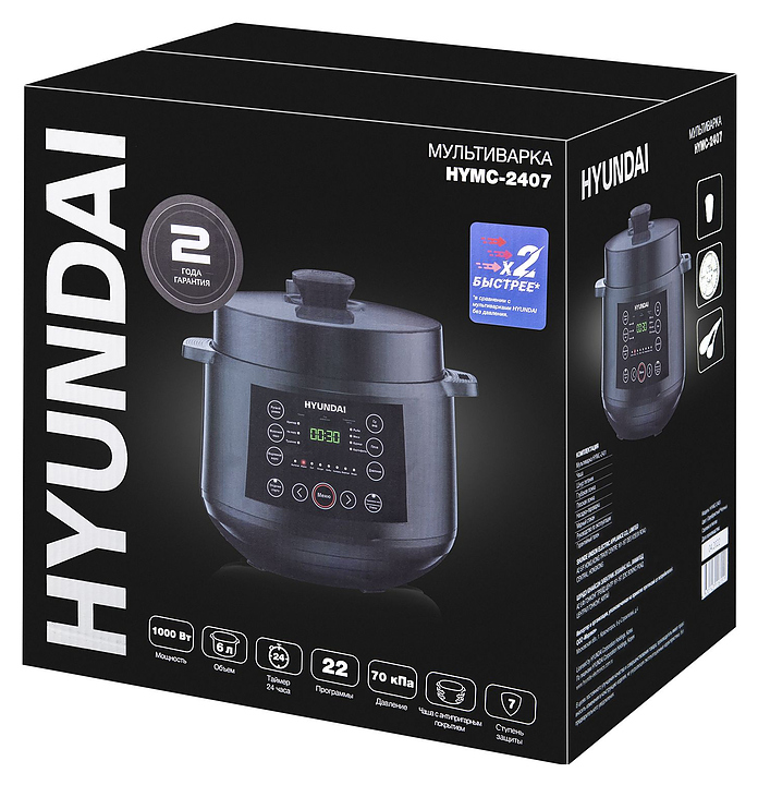 Мультиварка-скороварка Hyundai HYMC-2407 предназначена для приготовления на пару, обжаривания, тушения, выпечки и варки различных продуктов в квартирах и частных домах. Модель оснащена электронным управлением и ЖК-дисплеем. При активации режима пароварки крышка блокируется для создания повышенного давления. Антипригарное покрытие чаши позволяет готовить с использованием минимального количества масла и сохраняет естественный вкус. Корпус выполнен из пластика. В комплект поставки входит пароварка. Особенности: