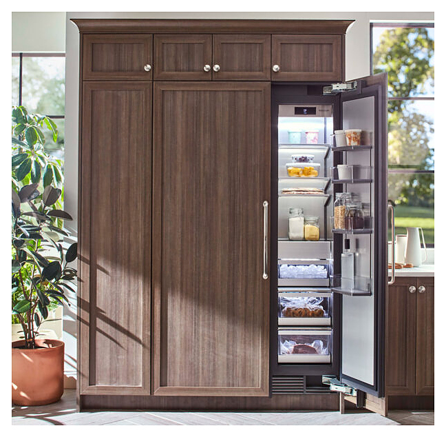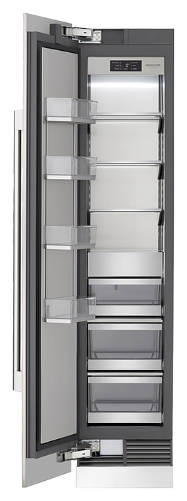 Встраиваемый морозильник SIGNATURE KITCHEN SUITE SKSCF1811P предназначен для замораживания, кратковременного и длительного хранения продуктов питания в частных домах, квартирах, отелях и офисах. Модель оснащена инверторным линейным компрессором, цифровым управлением со светодиодным дисплеем, индикатором фильтра для воды и перенавешиваемой дверью. Система принудительной циркуляции воздуха NoFrost препятствует осаждению на холодных поверхностях влаги с последующей ее кристаллизацией, что не требуют периодического размораживания. Дверные полки выполнены из алюминия.