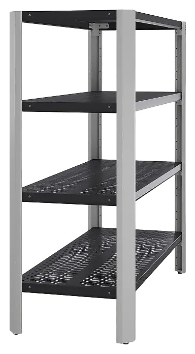 Стеллаж Kobor Expert MRP4-180/40 предназначен для хранения инструментов, инвентаря, комплектующих, расходных материалов, штучных изделий или тарированных мелких грузов в производственных, складских и подсобных помещениях предприятий различных отраслей, мастерских и гаражах, а также для хранения документации в офисах и архивах. Модель оснащена 4 перфорированными полками. Полки выполнены из стали с продольным усилением и покрытием порошковой краской черного цвета (RAL 9005) с текстурой муар, каркасные стойки – из стального профиля с порошковой краской светло-серого оттенка (RAL 7035) с текстурой муар. Особенности: