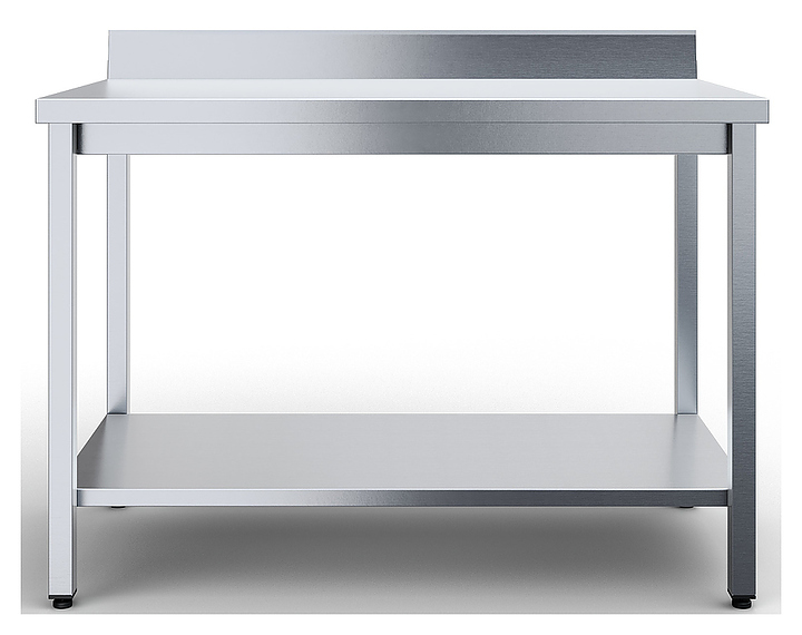 Стол Rada СТПУЧ-12/6-С предназначен для обработки продуктов питания, раскатки теста и хранения кухонной техники на предприятиях общественного питания и пищевой промышленности. Модель оснащена регулируемыми по высоте ножками, съемным бортом и сплошной полкой. Каркас выполнен из уголка нержавеющей стали AISI 430, столешница и полка из нержавеющей стали AISI 430 толщиной 0,8 мм, столешница усилена подложкой из фанеры толщиной 16 мм. Особенности: