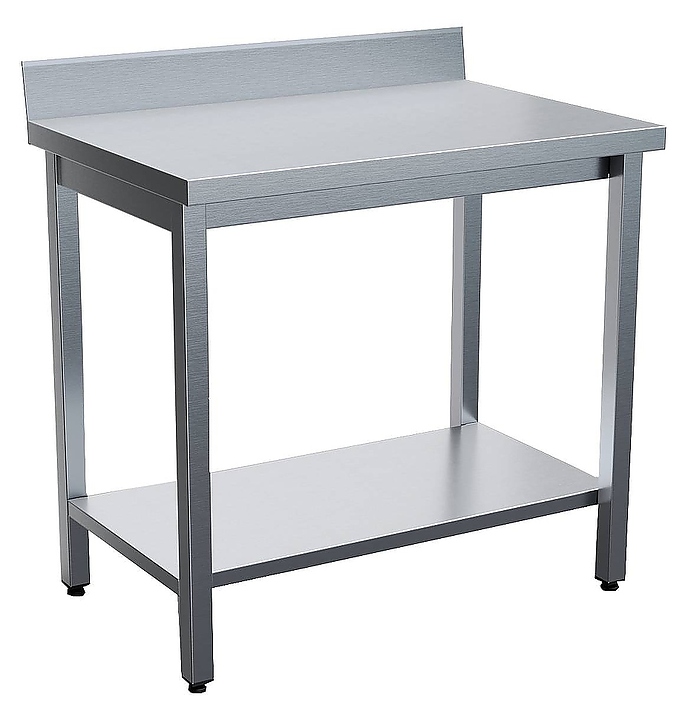 Стол Rada СТПУЧ-8/6-С предназначен для обработки продуктов питания, раскатки теста и хранения кухонной техники на предприятиях общественного питания и пищевой промышленности. Модель оснащена регулируемыми по высоте ножками, съемным бортом и сплошной полкой. Каркас выполнен из уголка нержавеющей стали AISI 430, столешница и полка из нержавеющей стали AISI 430 толщиной 0,8 мм, столешница усилена подложкой из фанеры толщиной 16 мм. Особенности: