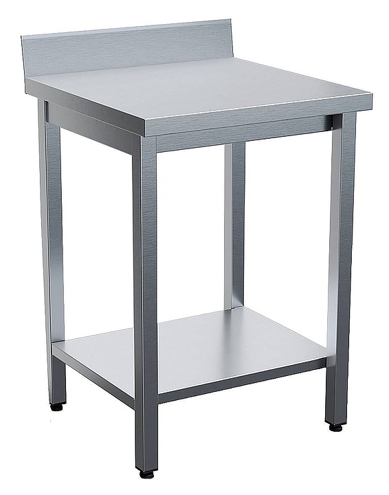 Стол Rada СТПУЧ-6/6-С предназначен для обработки продуктов питания, раскатки теста и хранения кухонной техники на предприятиях общественного питания и пищевой промышленности. Модель оснащена регулируемыми по высоте ножками, съемным бортом и сплошной полкой. Каркас выполнен из уголка нержавеющей стали AISI 430, столешница и полка из нержавеющей стали AISI 430 толщиной 0,8 мм, столешница усилена подложкой из фанеры толщиной 16 мм. Особенности: