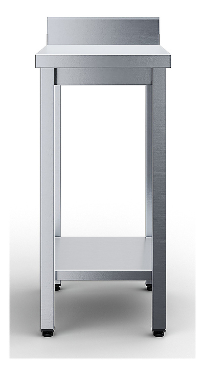 Стол Rada СТПУЧ-4/7-С предназначен для обработки продуктов питания, раскатки теста и хранения кухонной техники на предприятиях общественного питания и пищевой промышленности. Модель оснащена регулируемыми по высоте ножками, съемным бортом и сплошной полкой. Каркас выполнен из уголка нержавеющей стали AISI 430, столешница и полка из нержавеющей стали AISI 430 толщиной 0,8 мм, столешница усилена подложкой из фанеры толщиной 16 мм. Особенности: