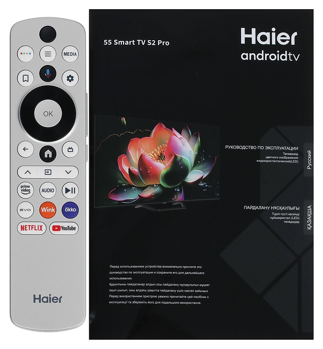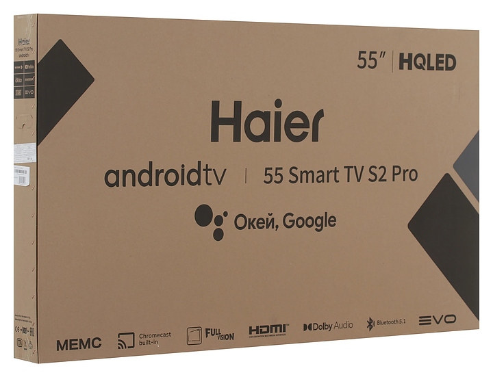 Телевизор Haier 55 Smart TV S2 Pro предназначен для приема и воспроизведения видео и аудио контента с различных ресурсов таких как телевещание, Интернет, дополнительное подключаемое оборудование и физические носители в домашних условиях, гостиницах, офисах, холлах и кабинетах различных учреждений. Прибор оснащен плоским монитором, акустической стереосистемой с 2 встроенными динамиками, встроенным блоком питания, кабелем питания с вилкой и основным выключателем, пульт – кнопочной клавиатурой. Кожух прибора выполнен из ударопрочного полимера с поверхностью черного цвета, фронтальная рамка и опора с поверхностью серого оттенка, корпус пульта – из пластика с серебристой поверхностью.