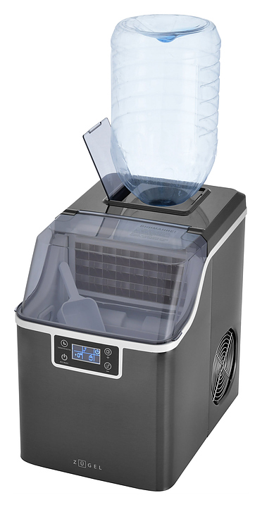 Льдогенератор Zugel ZIM2001 предназначен для получения кубикового льда, который используется для приготовления разнообразных коктейлей, алкогольных и прохладительных напитков в частных домах, квартирах, отелях и офисах. Модель оснащена электронным управлением, ЖК-дисплеем и прозрачной крышкой для контроля за процессом приготовления. На корпусе можно установить бутыль объемом до 5 л для постоянного наполнения резервуара водой, что позволяет сделать процесс приготовления льда непрерывным и автоматическим. Корпус выполнен из стали, пенообразователь - циклопентан. Особенности: