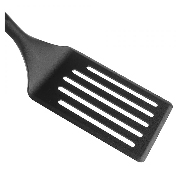 Лопатка кухонная с прорезями Olympia Diamant Plus 400.13 относится к серии кухонных аксессуаров Diamante и предназначена для использования на предприятиях общественного питания и торговли, а также в домашних условиях. Модель оснащена длинной ручкой с отверстием для подвешивания. Изделие выполнено из пищевого нейлона, который не абсорбирует жир и запахи, нейтрально относится к пищевым продуктам - не меняет их вкус и аромат. Особенности: