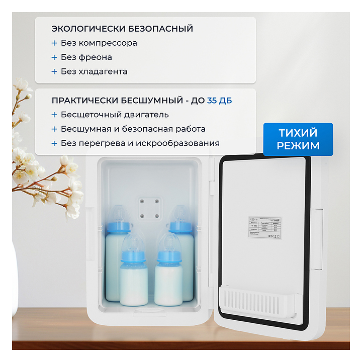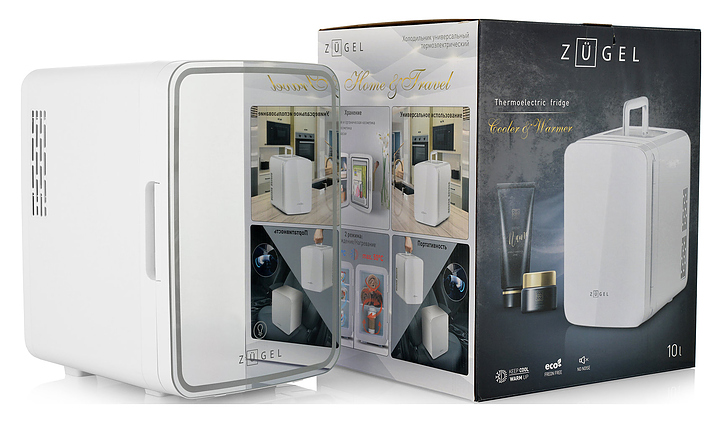 Холодильник Zugel ZCR-003M используется в специализированных салонах, офисах, гостиницах и в домашних условиях для хранения и транспортировки широкого спектра косметических средств с ограниченным сроком годности, для охлаждения пищевых продуктов, лекарственных препаратов и сохранения тепла в режиме нагрева необходимых материалов и продуктов. Модель оснащена вертикально ориентированной камерой, 2 полками, зеркалом на дверце и складной ручкой для переноски. Бесщеточный двигатель гарантирует бесшумную работу без перегрева и искрообразования. Корпус выполнен из прочного ABS-пластика с EPS-изоляцией. В комплект поставки входят сетевой и автомобильный кабели питания. Особенности:
